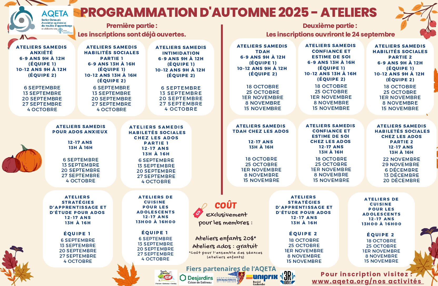 Dates des ateliers :