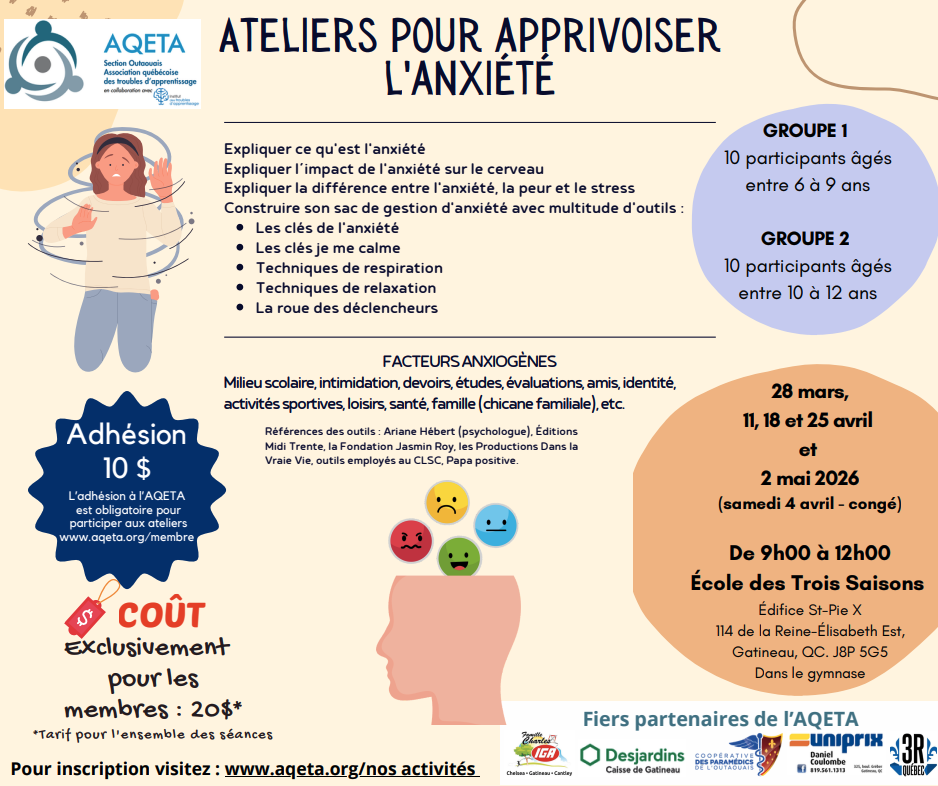 Durée : 3h – L’adhésion à l’AQETA est nécessaire pour participer à cet atelier.