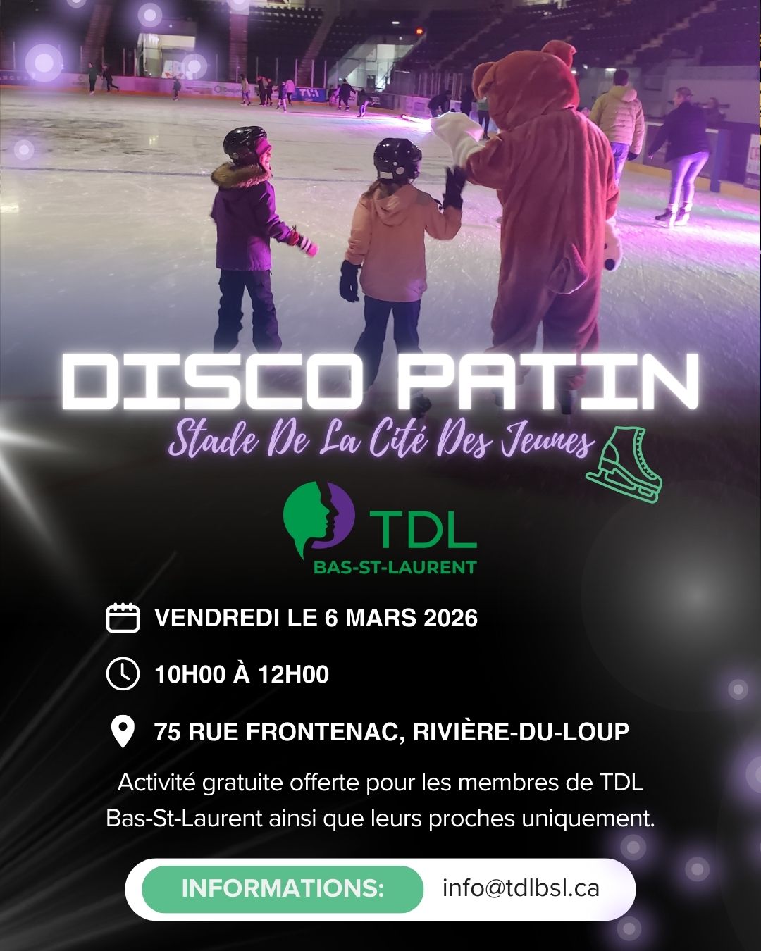 Nous sommes heureux de vous inviter à notre activité Disco patin durant la semaine de relâche!